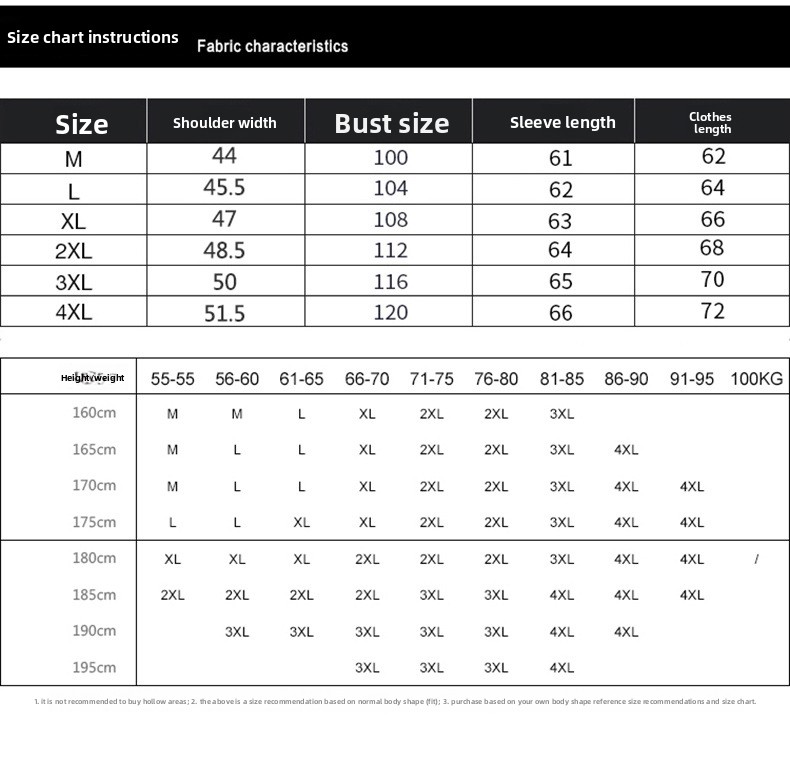 Sizes: M, L, XL, XXL, 3XL, 4XL